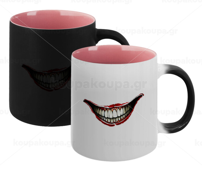 Joker smile, Κούπα Μαγική εσωτερικό ΡΟΖ, κεραμική 330ml που αλλάζει χρώμα με το ζεστό ρόφημα