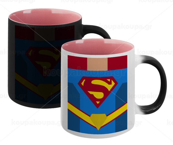 Superman flat, Κούπα Μαγική εσωτερικό ΡΟΖ, κεραμική 330ml που αλλάζει χρώμα με το ζεστό ρόφημα