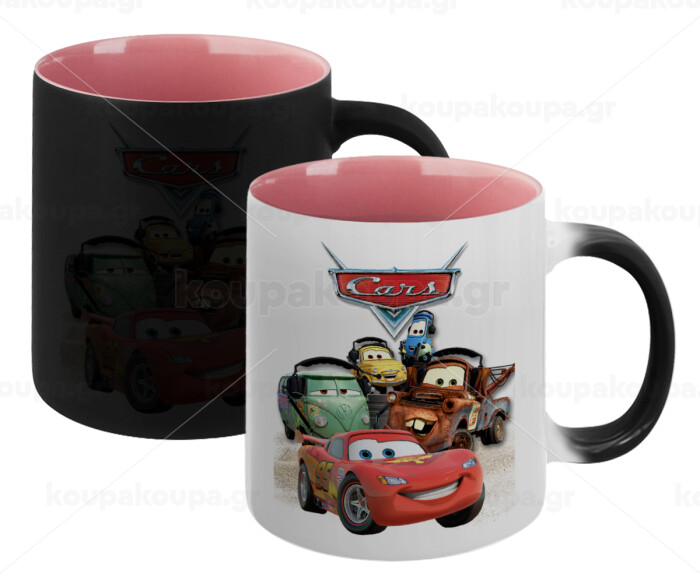 Αυτοκίνητα, Κούπα Μαγική εσωτερικό ΡΟΖ, κεραμική 330ml που αλλάζει χρώμα με το ζεστό ρόφημα