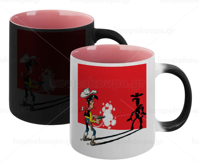 Λούκυ Λουκ σκιές, Κούπα Μαγική εσωτερικό ΡΟΖ, κεραμική 330ml που αλλάζει χρώμα με το ζεστό ρόφημα