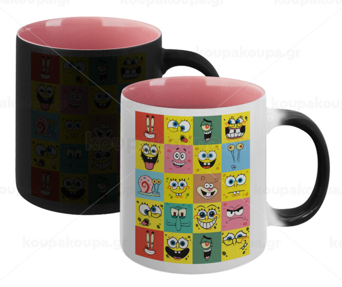 Ο μπομπ και οι φίλοι του, Κούπα Μαγική εσωτερικό ΡΟΖ, κεραμική 330ml που αλλάζει χρώμα με το ζεστό ρόφημα