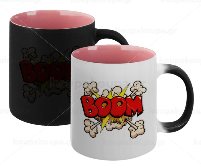 BOOM!!!, Κούπα Μαγική εσωτερικό ΡΟΖ, κεραμική 330ml που αλλάζει χρώμα με το ζεστό ρόφημα