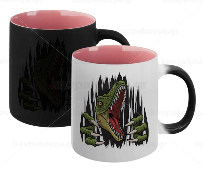 Dinosaur scratch, Κούπα Μαγική εσωτερικό ΡΟΖ, κεραμική 330ml που αλλάζει χρώμα με το ζεστό ρόφημα