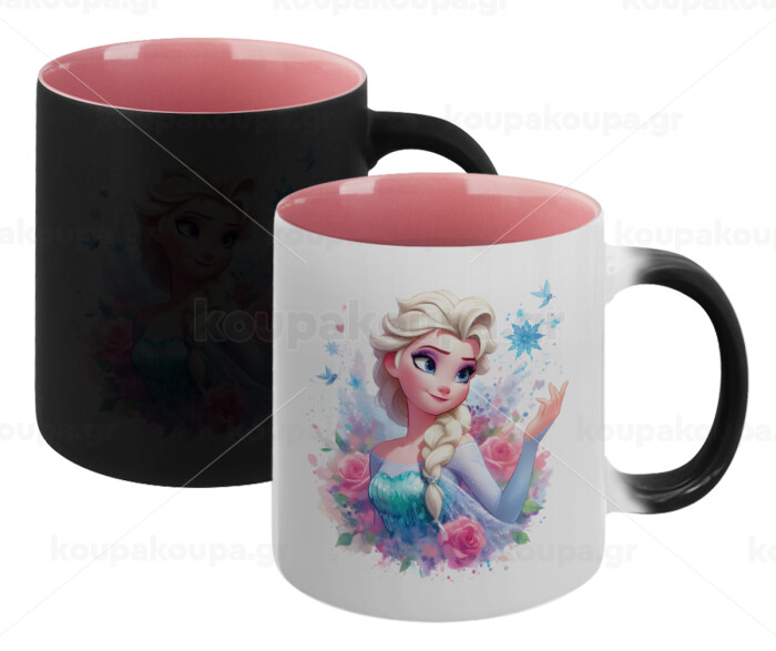 Elsa Princess, Κούπα Μαγική εσωτερικό ΡΟΖ, κεραμική 330ml που αλλάζει χρώμα με το ζεστό ρόφημα