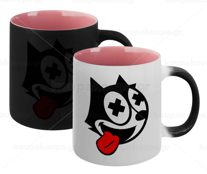 helix the cat, Κούπα Μαγική εσωτερικό ΡΟΖ, κεραμική 330ml που αλλάζει χρώμα με το ζεστό ρόφημα