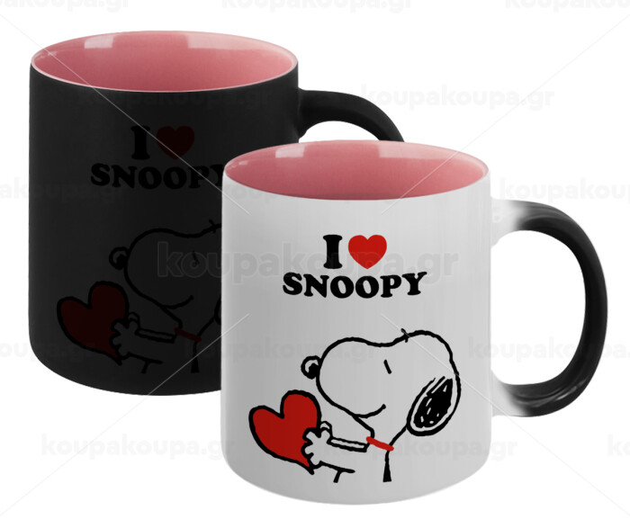 I LOVE SNOOPY, Κούπα Μαγική εσωτερικό ΡΟΖ, κεραμική 330ml που αλλάζει χρώμα με το ζεστό ρόφημα