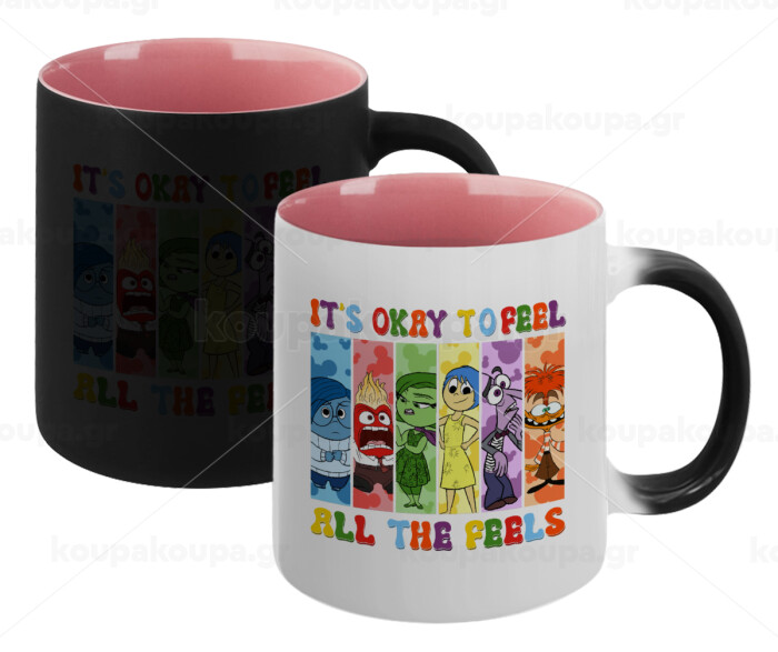 Inside Out It's Okay To Feel All The Feels , Κούπα Μαγική εσωτερικό ΡΟΖ, κεραμική 330ml που αλλάζει χρώμα με το ζεστό ρόφημα