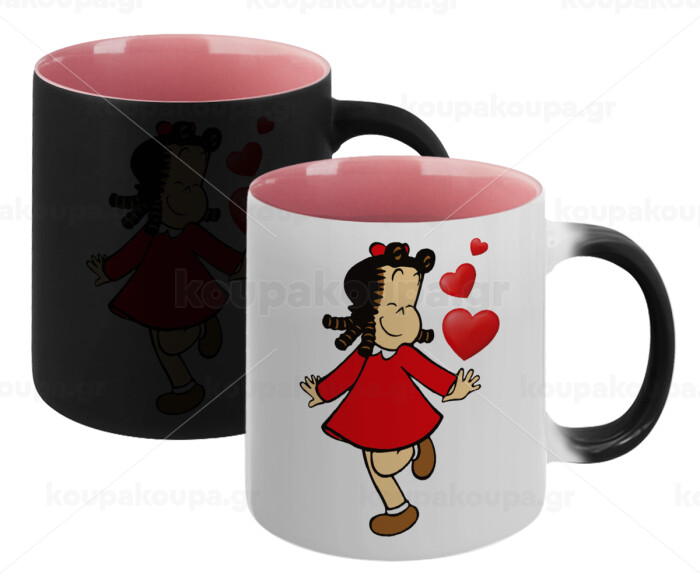 Η μικρή Λουλού, Κούπα Μαγική εσωτερικό ΡΟΖ, κεραμική 330ml που αλλάζει χρώμα με το ζεστό ρόφημα