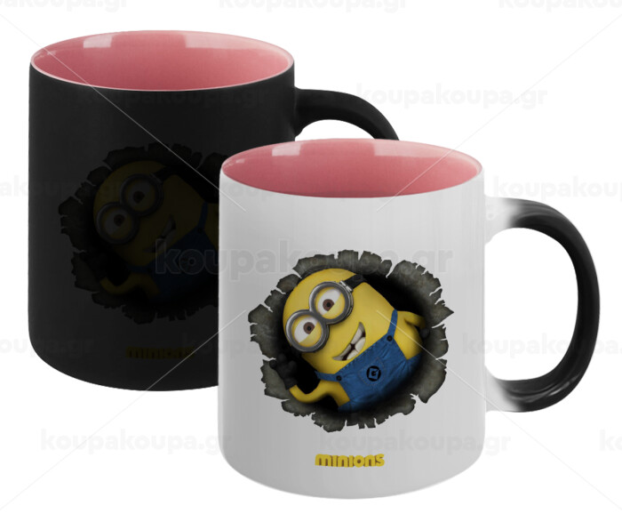 Minions hi, Κούπα Μαγική εσωτερικό ΡΟΖ, κεραμική 330ml που αλλάζει χρώμα με το ζεστό ρόφημα