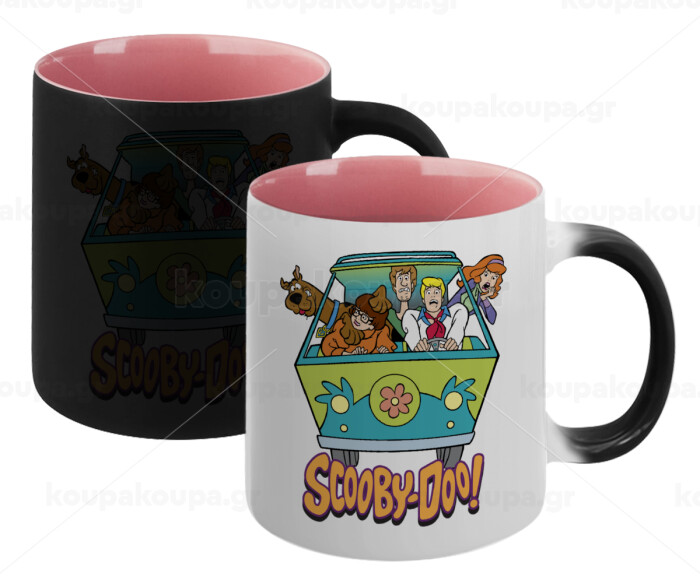 Scooby Doo car, Κούπα Μαγική εσωτερικό ΡΟΖ, κεραμική 330ml που αλλάζει χρώμα με το ζεστό ρόφημα