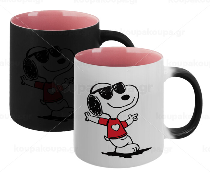 Snoopy καρδούλα, Κούπα Μαγική εσωτερικό ΡΟΖ, κεραμική 330ml που αλλάζει χρώμα με το ζεστό ρόφημα