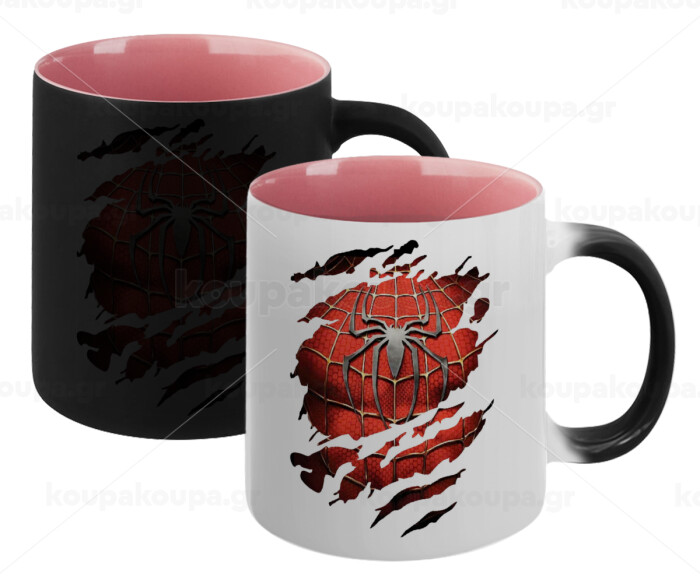 Spiderman cracked, Κούπα Μαγική εσωτερικό ΡΟΖ, κεραμική 330ml που αλλάζει χρώμα με το ζεστό ρόφημα
