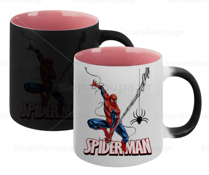 Spiderman fly, Κούπα Μαγική εσωτερικό ΡΟΖ, κεραμική 330ml που αλλάζει χρώμα με το ζεστό ρόφημα