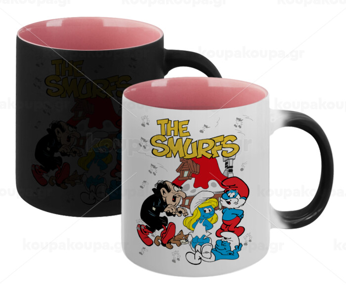 Τα στρουμφάκια, Κούπα Μαγική εσωτερικό ΡΟΖ, κεραμική 330ml που αλλάζει χρώμα με το ζεστό ρόφημα