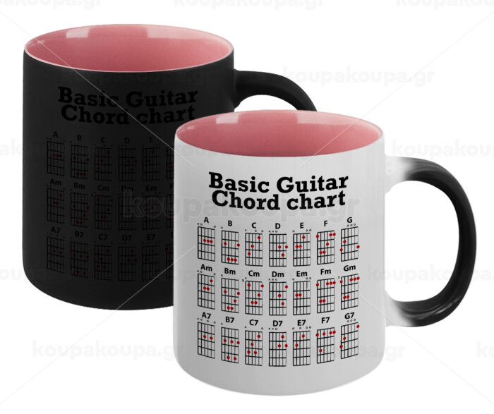 Συγχορδίες κιθάρας, Κούπα Μαγική εσωτερικό ΡΟΖ, κεραμική 330ml που αλλάζει χρώμα με το ζεστό ρόφημα