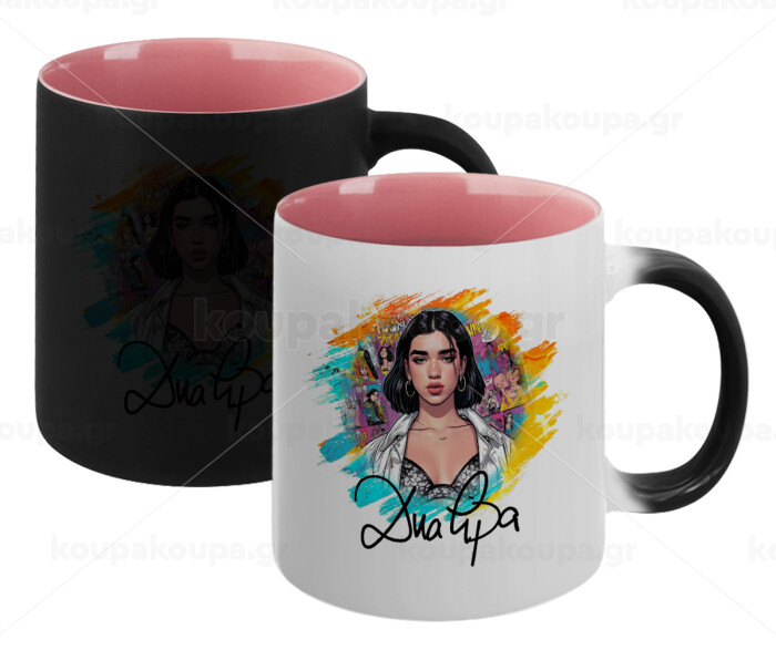 Dua lipa, Κούπα Μαγική εσωτερικό ΡΟΖ, κεραμική 330ml που αλλάζει χρώμα με το ζεστό ρόφημα