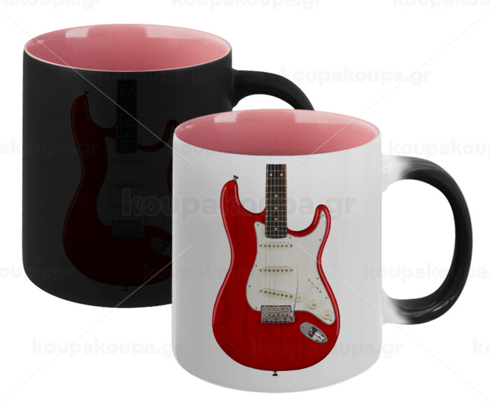Guitar stratocaster, Κούπα Μαγική εσωτερικό ΡΟΖ, κεραμική 330ml που αλλάζει χρώμα με το ζεστό ρόφημα