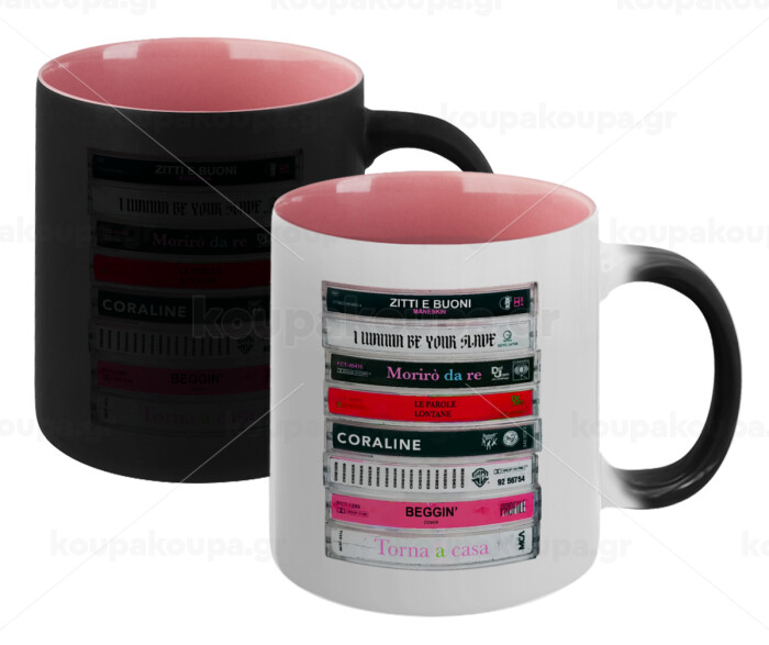 Maneskin Cassette, Κούπα Μαγική εσωτερικό ΡΟΖ, κεραμική 330ml που αλλάζει χρώμα με το ζεστό ρόφημα