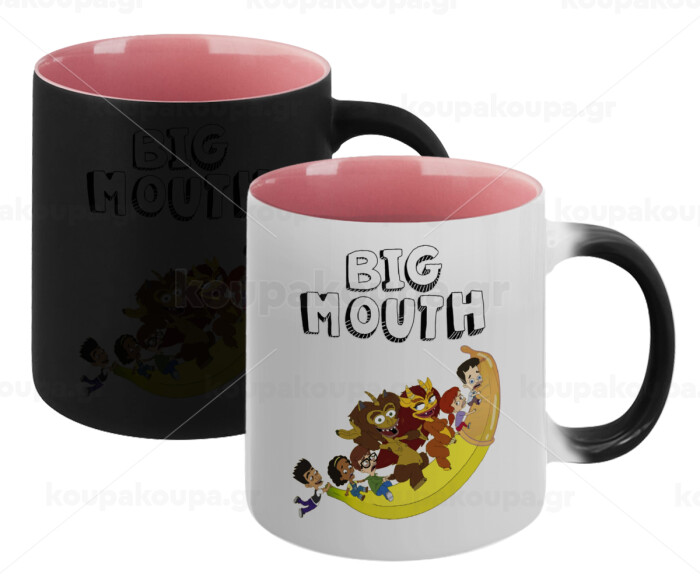 Big mouth, Κούπα Μαγική εσωτερικό ΡΟΖ, κεραμική 330ml που αλλάζει χρώμα με το ζεστό ρόφημα