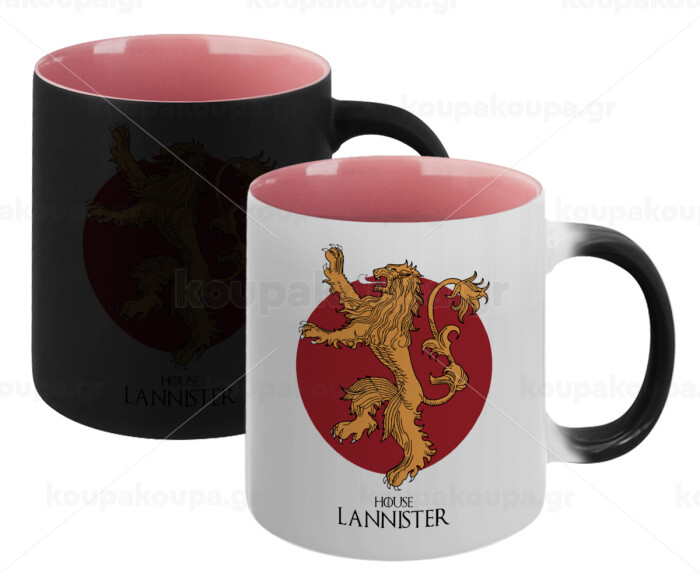 House Lannister GOT, Κούπα Μαγική εσωτερικό ΡΟΖ, κεραμική 330ml που αλλάζει χρώμα με το ζεστό ρόφημα