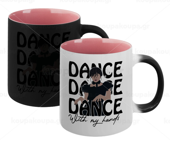 Wednesday dance dance dance, Κούπα Μαγική εσωτερικό ΡΟΖ, κεραμική 330ml που αλλάζει χρώμα με το ζεστό ρόφημα