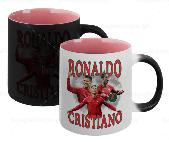Κριστιάνο Ρονάλντο, Κούπα Μαγική εσωτερικό ΡΟΖ, κεραμική 330ml που αλλάζει χρώμα με το ζεστό ρόφημα