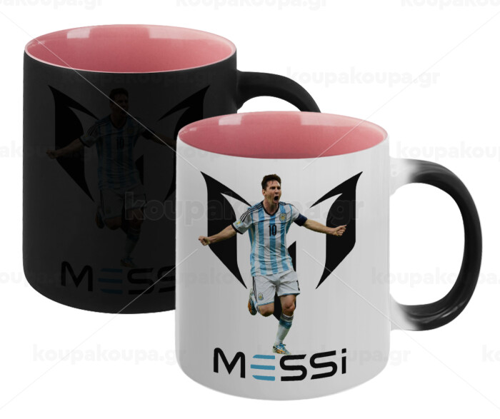 Λιονέλ Μέσι, Leo Messi, Κούπα Μαγική εσωτερικό ΡΟΖ, κεραμική 330ml που αλλάζει χρώμα με το ζεστό ρόφημα