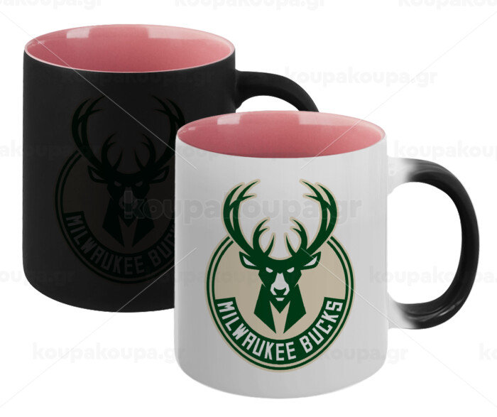 Milwaukee bucks, Κούπα Μαγική εσωτερικό ΡΟΖ, κεραμική 330ml που αλλάζει χρώμα με το ζεστό ρόφημα