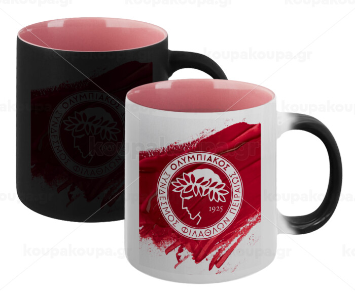 Olympiacos F.C., Κούπα Μαγική εσωτερικό ΡΟΖ, κεραμική 330ml που αλλάζει χρώμα με το ζεστό ρόφημα
