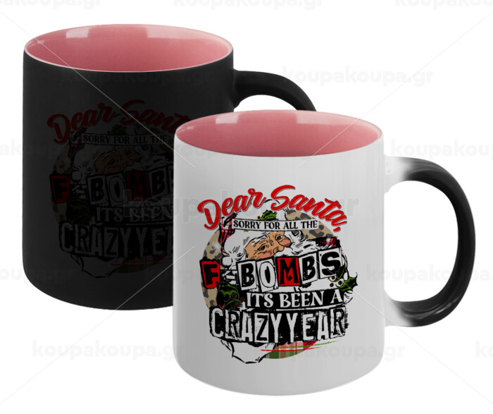 Dear Santa, sorry for all the F-bombs, Κούπα Μαγική εσωτερικό ΡΟΖ, κεραμική 330ml που αλλάζει χρώμα με το ζεστό ρόφημα