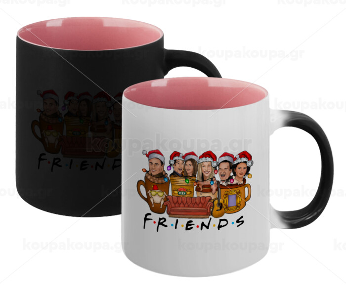 FRIENDS xmas, Κούπα Μαγική εσωτερικό ΡΟΖ, κεραμική 330ml που αλλάζει χρώμα με το ζεστό ρόφημα