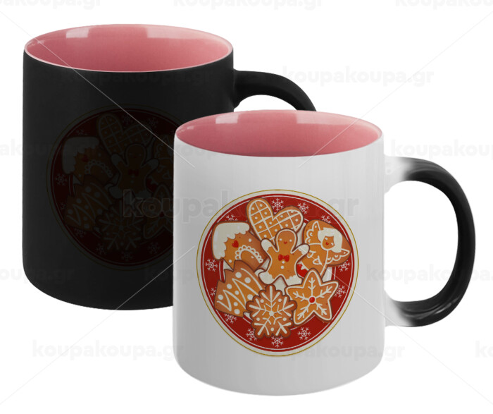 xmas cookies, Κούπα Μαγική εσωτερικό ΡΟΖ, κεραμική 330ml που αλλάζει χρώμα με το ζεστό ρόφημα