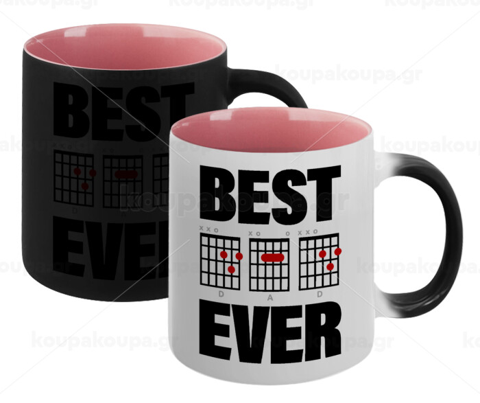 Best DAD Ever συγχορδίες κιθάρας, Κούπα Μαγική εσωτερικό ΡΟΖ, κεραμική 330ml που αλλάζει χρώμα με το ζεστό ρόφημα