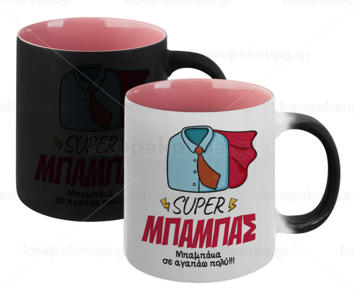 SUPER ΜΠΑΜΠΑΣ, Κούπα Μαγική εσωτερικό ΡΟΖ, κεραμική 330ml που αλλάζει χρώμα με το ζεστό ρόφημα