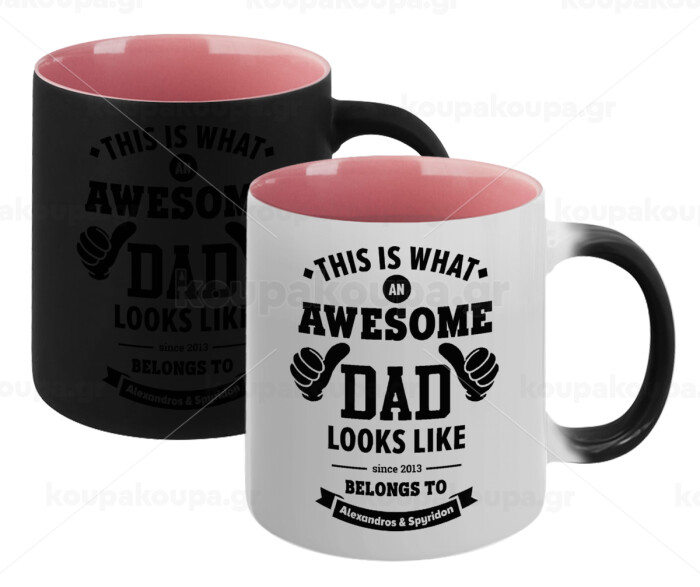 This is what an Awesome DAD looks like, Κούπα Μαγική εσωτερικό ΡΟΖ, κεραμική 330ml που αλλάζει χρώμα με το ζεστό ρόφημα