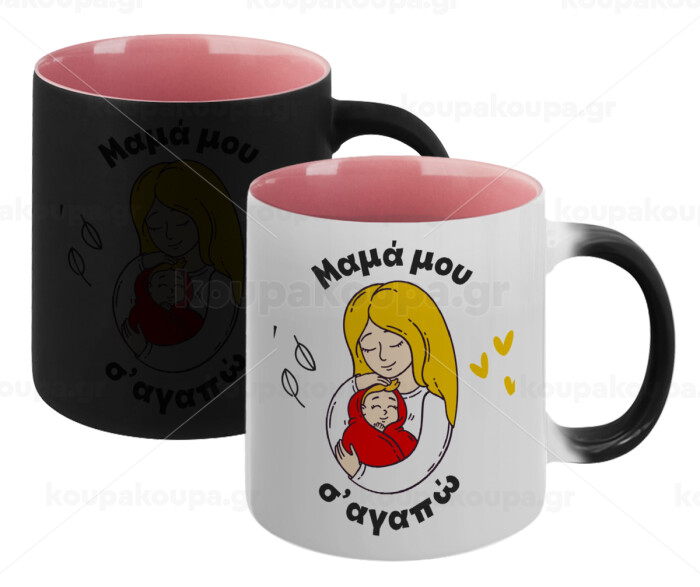 Μανούλα σ'αγαπώ αγκαλιά!, Κούπα Μαγική εσωτερικό ΡΟΖ, κεραμική 330ml που αλλάζει χρώμα με το ζεστό ρόφημα