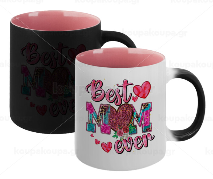Best mom ever Mother's Day pink, Κούπα Μαγική εσωτερικό ΡΟΖ, κεραμική 330ml που αλλάζει χρώμα με το ζεστό ρόφημα