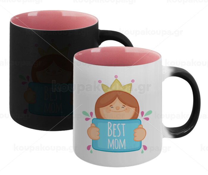 Best mom Princess, Κούπα Μαγική εσωτερικό ΡΟΖ, κεραμική 330ml που αλλάζει χρώμα με το ζεστό ρόφημα