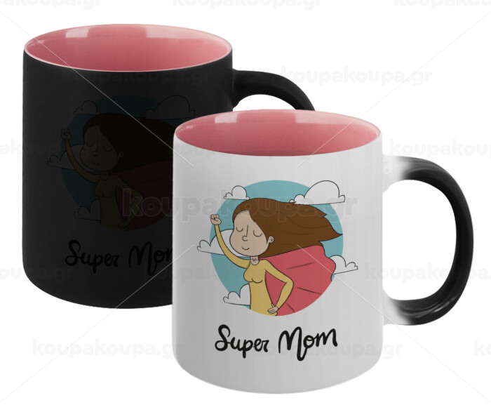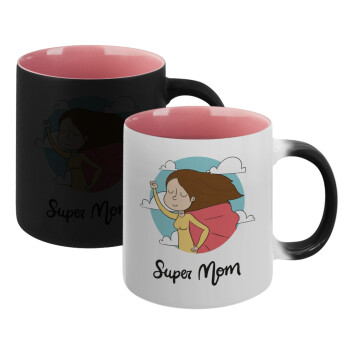 Super mom, Κούπα Μαγική εσωτερικό ΡΟΖ, κεραμική 330ml που αλλάζει χρώμα με το ζεστό ρόφημα
