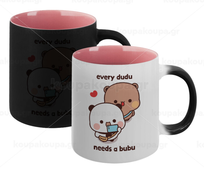 Every Dudu needs a bubu, Κούπα Μαγική εσωτερικό ΡΟΖ, κεραμική 330ml που αλλάζει χρώμα με το ζεστό ρόφημα