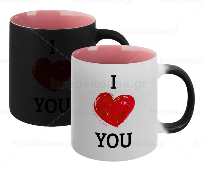 I Love You, Κούπα Μαγική εσωτερικό ΡΟΖ, κεραμική 330ml που αλλάζει χρώμα με το ζεστό ρόφημα