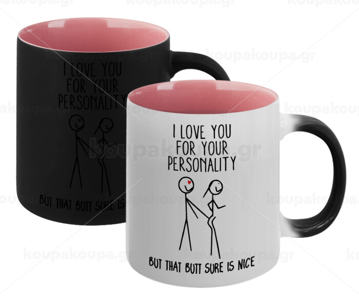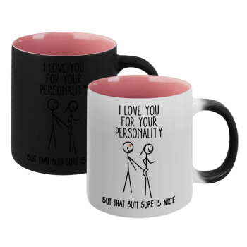 I Love you for your personality, Κούπα Μαγική εσωτερικό ΡΟΖ, κεραμική 330ml που αλλάζει χρώμα με το ζεστό ρόφημα