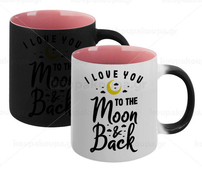 I love you to the moon and back, Κούπα Μαγική εσωτερικό ΡΟΖ, κεραμική 330ml που αλλάζει χρώμα με το ζεστό ρόφημα