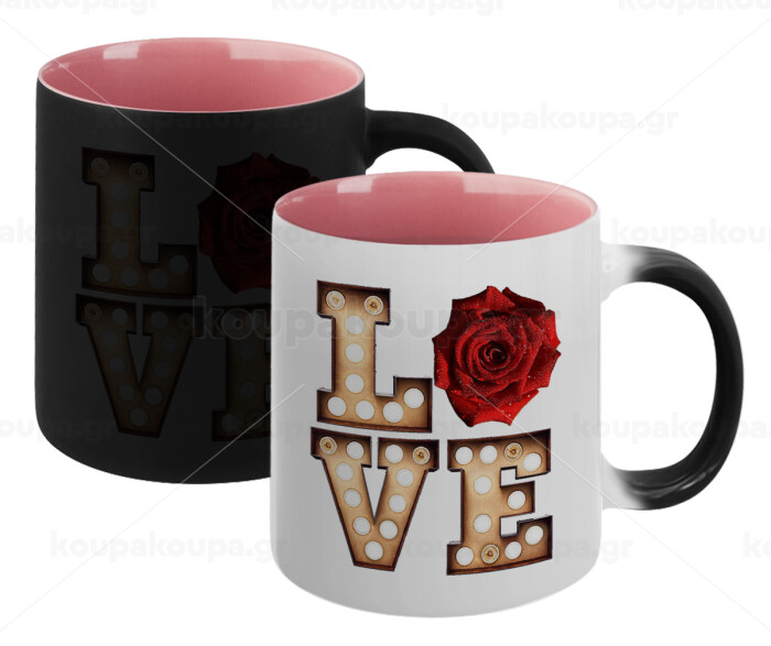 Love lights and roses, Κούπα Μαγική εσωτερικό ΡΟΖ, κεραμική 330ml που αλλάζει χρώμα με το ζεστό ρόφημα