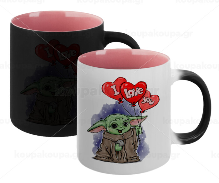 Yoda, i love you, Κούπα Μαγική εσωτερικό ΡΟΖ, κεραμική 330ml που αλλάζει χρώμα με το ζεστό ρόφημα