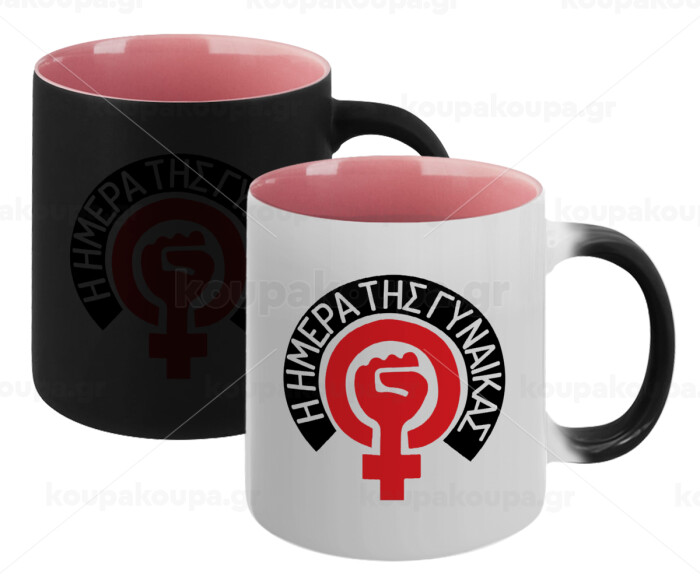 Ημέρα της γυναίκας, Κούπα Μαγική εσωτερικό ΡΟΖ, κεραμική 330ml που αλλάζει χρώμα με το ζεστό ρόφημα