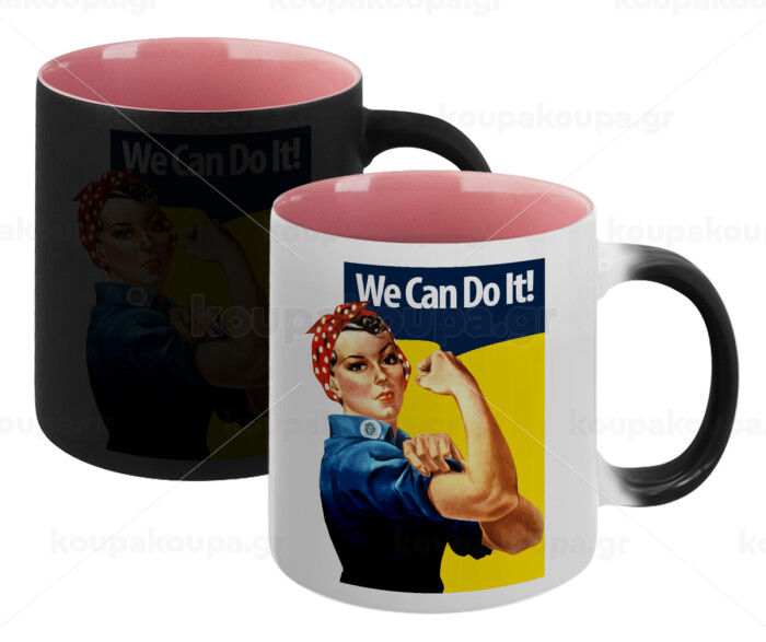 Rosie we can do it!, Κούπα Μαγική εσωτερικό ΡΟΖ, κεραμική 330ml που αλλάζει χρώμα με το ζεστό ρόφημα