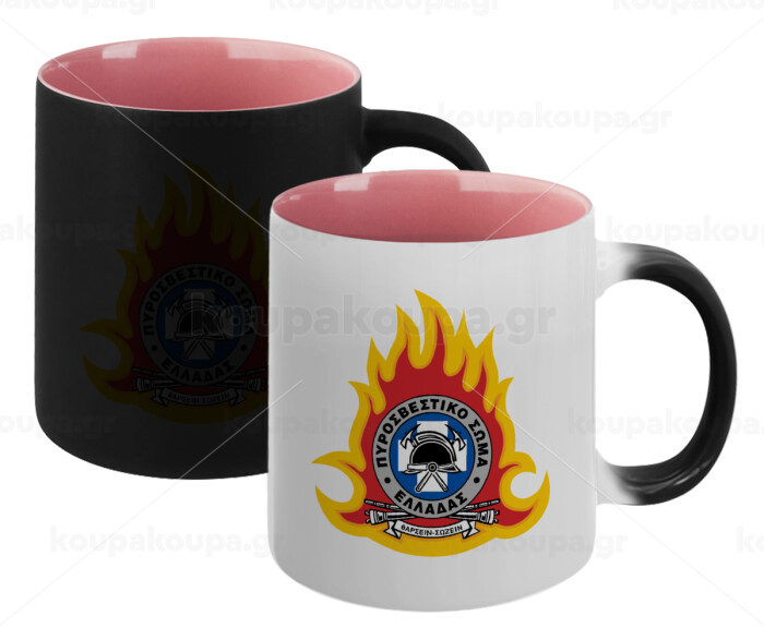 Πυροσβεστικό σώμα Ελλάδος σκούρο, Κούπα Μαγική εσωτερικό ΡΟΖ, κεραμική 330ml που αλλάζει χρώμα με το ζεστό ρόφημα