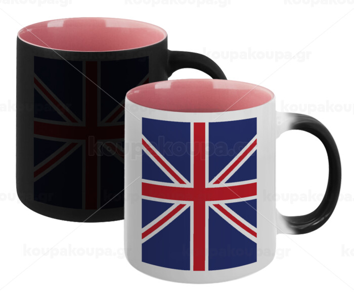 Σημαία Αγγλίας UK, Κούπα Μαγική εσωτερικό ΡΟΖ, κεραμική 330ml που αλλάζει χρώμα με το ζεστό ρόφημα