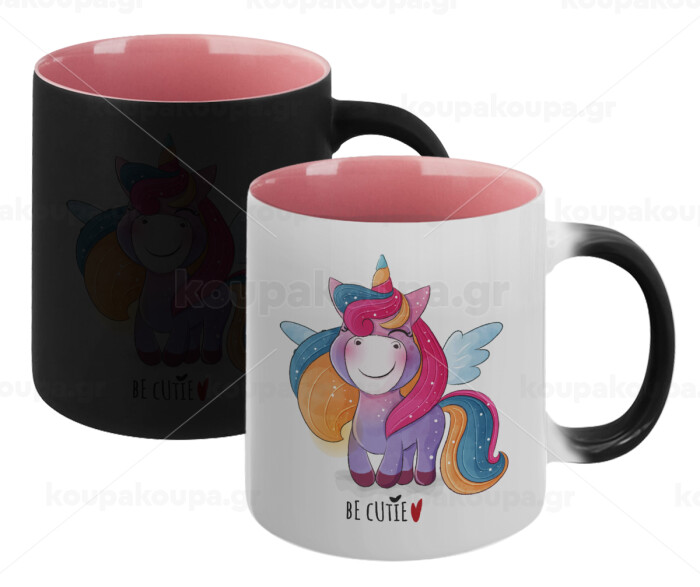 Μονόκερος, Κούπα Μαγική εσωτερικό ΡΟΖ, κεραμική 330ml που αλλάζει χρώμα με το ζεστό ρόφημα